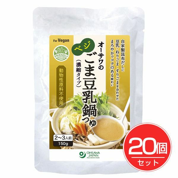 他の画像を見る 植物性素材でつくった鍋つゆの素 オーサワのベジごま豆乳鍋つゆ 150g×20個セット - オーサワジャパン 販売価格 ¥ 11,340 税込 送料無料 在庫切れ 「オーサワのベジごま豆乳鍋つゆ 150g」は、自家製昆布だしに豆乳・ねりごま・すりごまを合わせたまろやかでコクのある味わいのごま豆乳鍋つゆ(濃縮タイプ)です。 再入荷お知らせ お気に入りに登録する