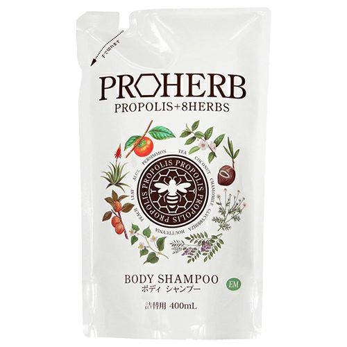 他の画像を見る プロハーブ EMボディシャンプー 詰替用 400ml - 岐阜アグリフーズ 定価 ¥ 1,760 販売価格 ¥ 1,650 税込 会員価格あり 「プロハーブ EMボディシャンプー 詰替用 400ml」は、プロポリスエキス、8種類の植物成分、ヒアルロン酸、ハチミツを配合したふんわりとした泡でやさしく洗うボディシャンプーです。 カートに入れる お気に入りに登録する