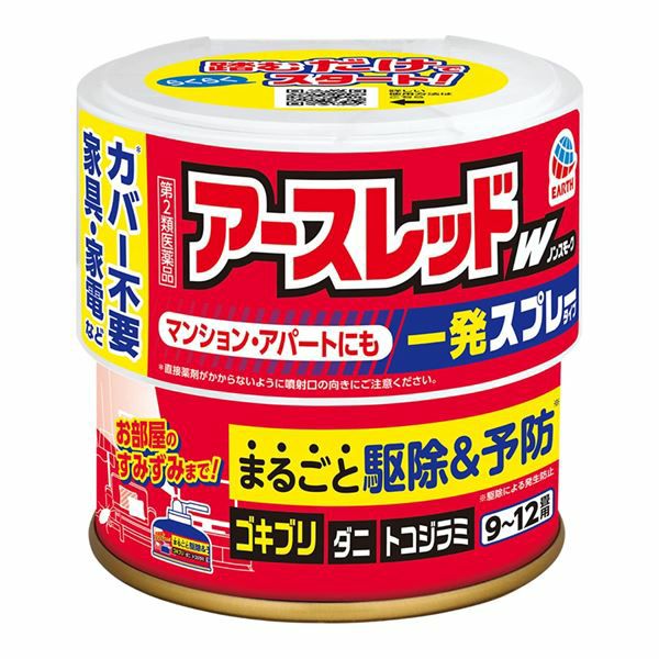 他の画像を見る 踏むだけ一発スプレーで、害虫まるごと駆除&予防 【第2類医薬品】 アースレッドWノンスモーク霧タイプ マンション・アパート用 9~12畳用 150ml×2個入 - アース製薬 [ゴキブリ/ダニ] 販売価格 ¥ 2,420 税込 「アースレッドWノンスモーク霧タイプ マンション・アパート用 9~12畳用 150ml×2個入」は、薬剤がお部屋のすみずみまで拡散し、ゴキブリ等をまるごと駆除&薬剤コートで駆除して予防。 詳細を見る お気に入りに登録する